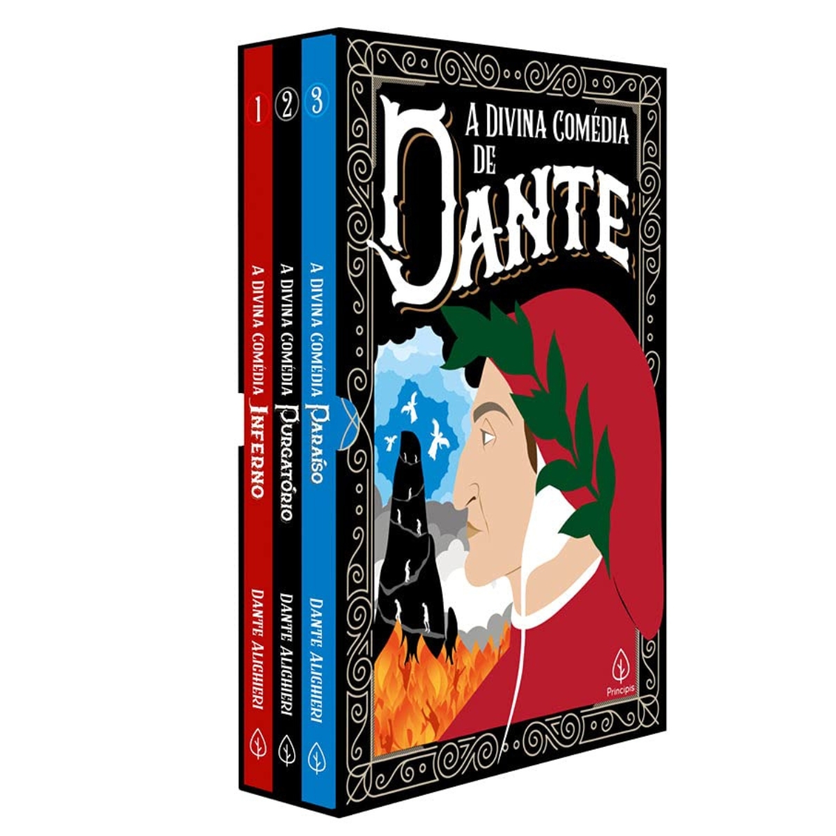 A Divina Comédia é um poema clássico da literatura italiana e mundial com características épica e teológica, escrito por Dante Alighieri no século XIV período renascentista e dividido em três partes o Inferno, o Purgatório e o Paraíso. São cem cantos protagonizados pelo próprio Dante em companhia do poeta romano Virgílio , que percorreu uma jornada espiritual pelos três reinos além túmulo. Kit com os 3 livro O Inferno, O Purgatório e O Paraíso.