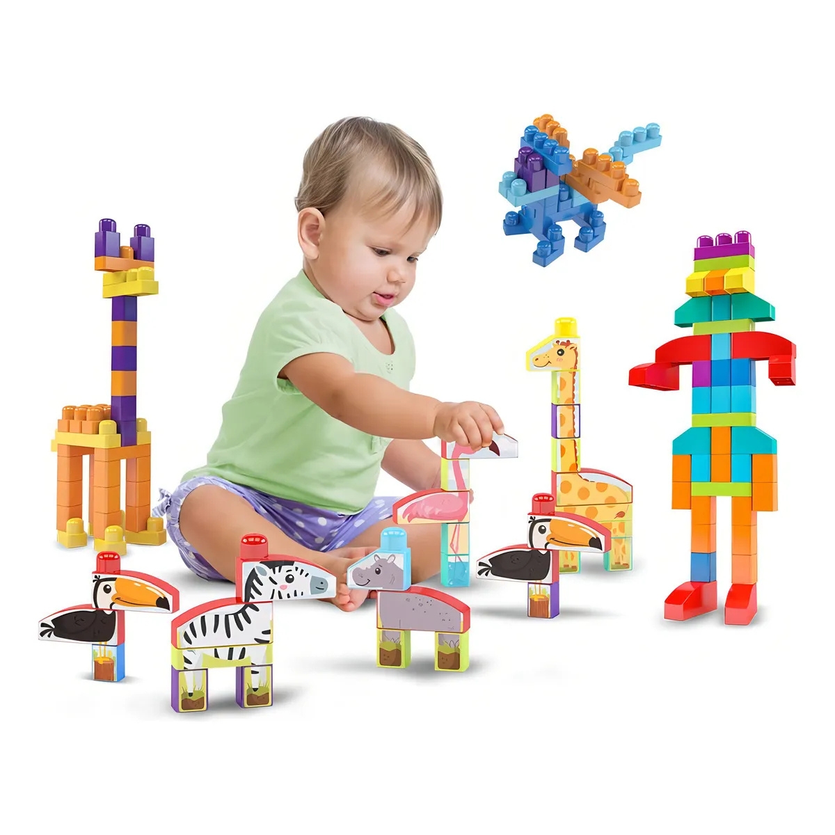 - Conjunto Completo: Inclui 80 peças coloridas, oferecendo uma variedade de formas e tamanhos para criar diferentes estruturas e cenários.